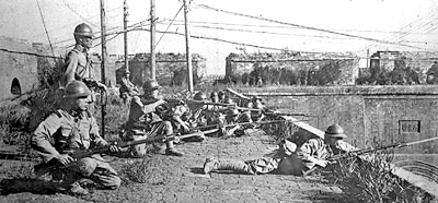 “九一八事变”后,次日晨日军在沈阳外攘门向中国军队进攻。