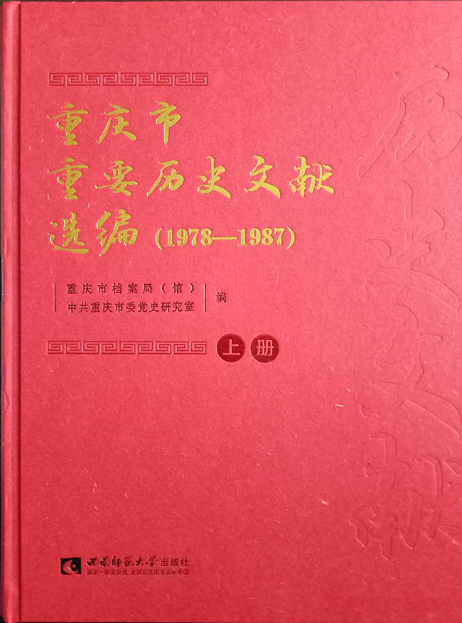 【简介:由中共重庆市委党史研究室、重庆市档案局(馆)联合编辑的《重庆市重要历史文献选编(1978-1987)》日前由西南师范大学出版社出版发行。新中国成立后,重庆作为长江上游的工商重镇,在全国发展战略中占据着重要地位。为全面反映新中国成立后中国共产党带领重庆人民取得的巨大成就,中共重庆市委党史研究室决定联合重庆市档案局(馆)编辑出版《重庆市重要历史文献选编(1949—2006)》多卷本文献集。为庆祝改革开放40周年,先行编辑出版了《重庆市重要历史文献选编(1978-1987)》。全书共计200余万字,由重要会议、重要文件、领导讲话、重点专题四部分组成。书中收录的文献,集中反映了改革开放初期重庆市委、市政府带领全市人民“与时间赛跑”,努力探索经济、政治、文化、社会等领域体制机制改革的壮阔历史,为深化研究和宣传重庆改革开放初期历史提供了准确可靠的史料依据。】