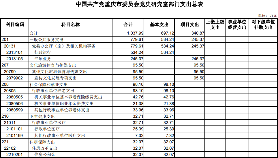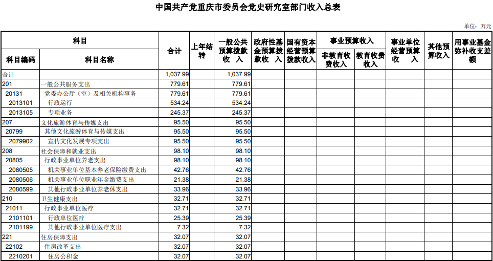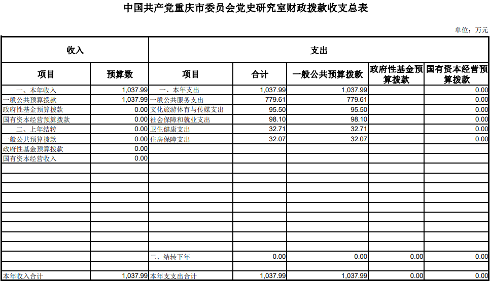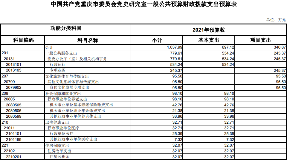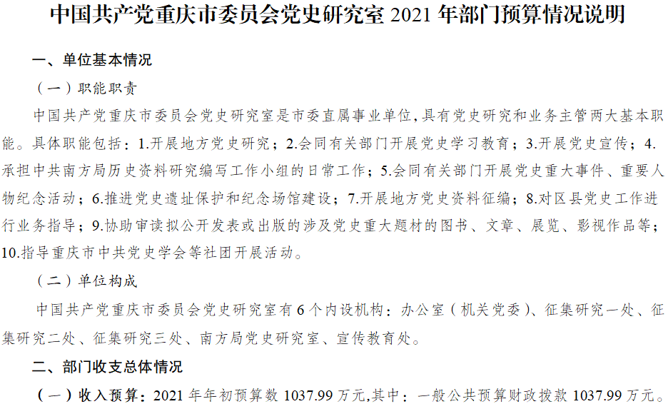 中国共产党重庆市委员会党史研究室2021年部门预算公开