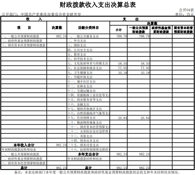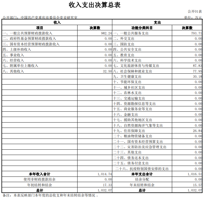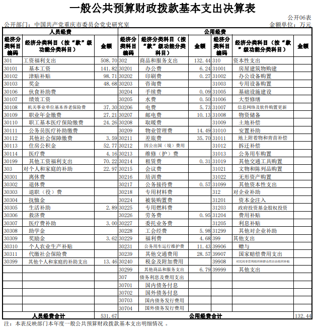 中国共产党重庆市委员会党史研究室2020年度决算公开